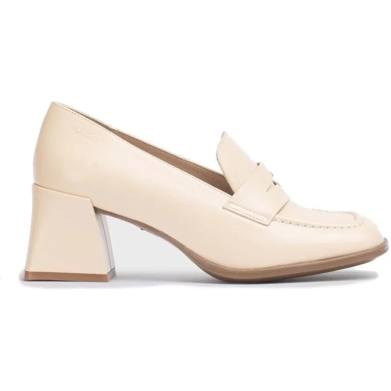 Leren mocassin met hoge hak. Deze klassieke loafer heeft bijpassende stiksels. De vierkante blokhak combineert comfort en elegantie. Gemaakt in Spanje door ambachtelijke handen. Wonderkwaliteit gegarandeerd.