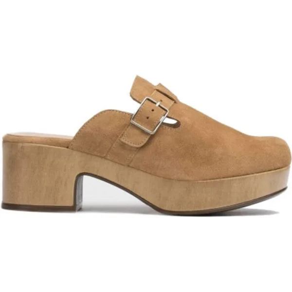 Bruin suède leren plateauklomp. Deze casual stijl klomp heeft een uitgesneden detail, bijpassende gesp en een flexibele zool die voor extra comfort zorgt. Kwaliteit en stijl gegarandeerd.