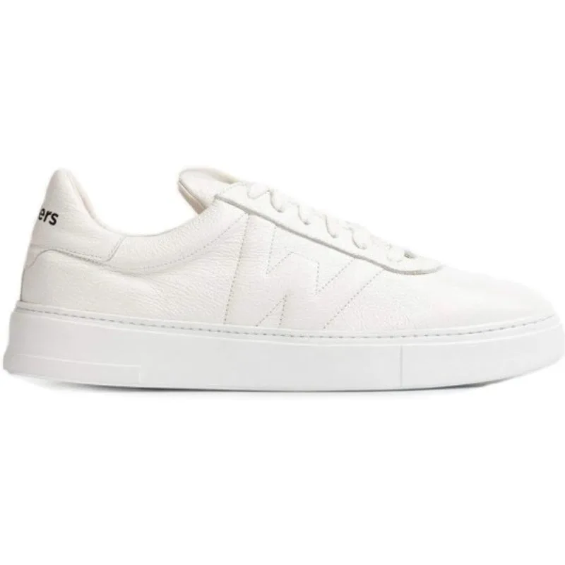 Witte leren herensneaker. Deze casual sneaker heeft een zijlogo in reliëf, uitneembare binnenzool, maxizool en een vetersluiting. Wonders Stijl en comfort gegarandeerd.