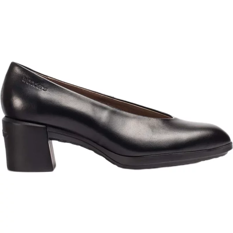 Zwarte leren schoen met hoge hak. Dit klassieke model met ronde neus en halslijn heeft een MemoryGel binnenzool. De flexibele rubberen zool zorgt voor extra comfort en lichtheid. Met alle kwaliteit en stijl van Wonders.