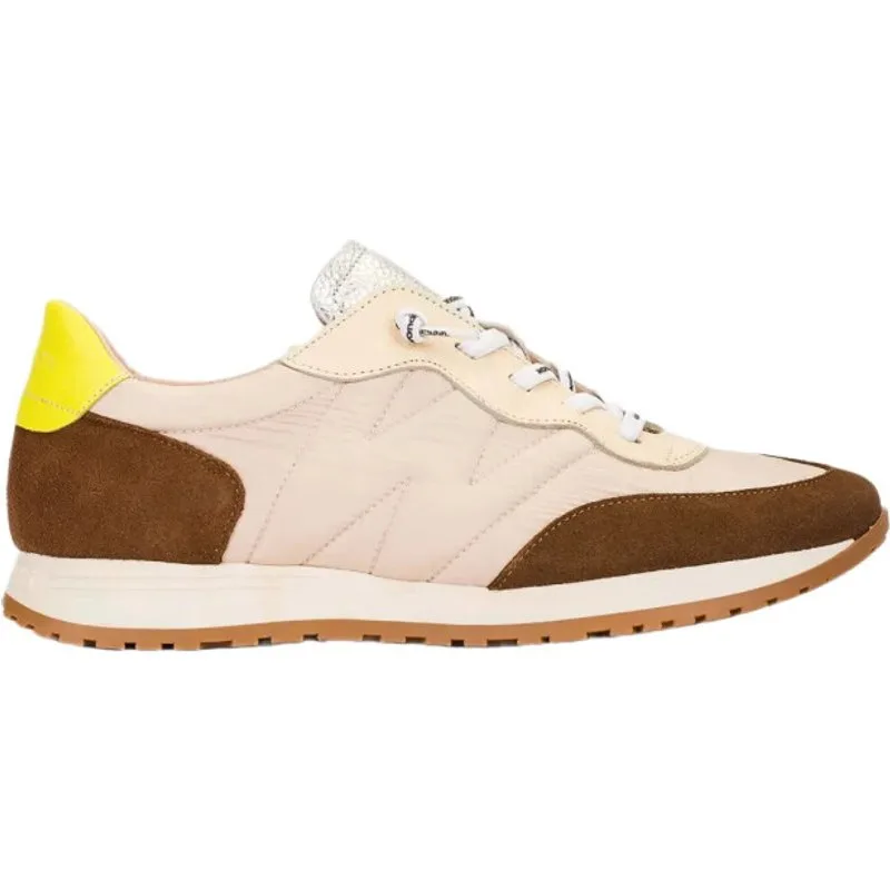 TOWANDA 02 sneakers gemaakt van een combinatie van textiel en leer in beige, bruin en cybergeel tinten. Dit model speelt met contrasten in textuur en kleur die diepte en karakter toevoegen. De zachte en gewatteerde afwerkingen vallen op, zoals de zijkant met de “W”, gemarkeerd door sierstiksels. De lichte zool met karamelafwerking is flexibel en stabiel, ontworpen om het dagelijkse ritme te volgen zonder stijl op te geven. De MemoryGel-binnenzool past zich perfect aan de voet aan en biedt comfort bij elke stap. Maak je klaar om het gevoel te ervaren. Wonders zet zich in voor verantwoorde productie, ondersteund door LEATHERWORKINGGROUP.