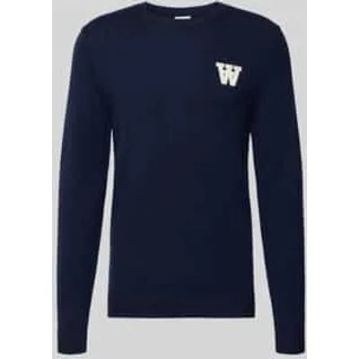 Gebreide herenpullover van Wood Wood;Pure lamswol;Regular fit;Model 'Tay';Labelstitching;Ronde hals;Ruglengte bij maat M: 72 cm;Mouwlengte bij maat M: 68 cm
