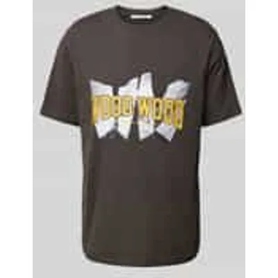 T-shirt van WOOD WOOD voor heren;Puur katoen;Regular fit;Ronde hals;Labelprint;Design met korte mouwen;Ruglengte bij maat M: 70 cm