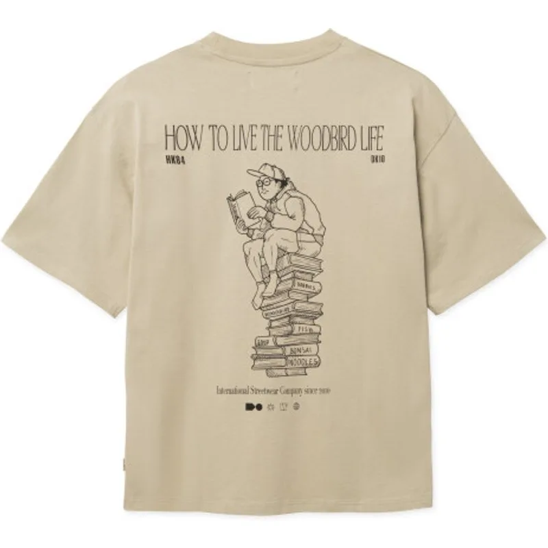 Deze Woodbird tee heeft een casual fit en een illustrated stacked-book design met een lifestyle-inspired print. Relaxed, creatief en easy te combineren. Gemaakt van 100% biologisch katoen voor dagelijks comfort met een bewuste touch.DetailsCasual fitIllustrated stacked-book printLifestyle-inspired artwork100% Organic Cotton