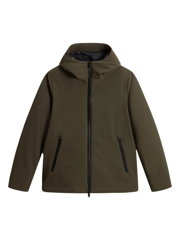 Deze Woolrich softshelljack voor heren verenigt moderne functionaliteit, sportieve elegantie en de onderscheidende stijl van het merk in een kledingstuk dat comfort en kwaliteit perfect met elkaar verbindt. Gemaakt van hoogwaardige materialen en uitgerust met een waterdichte, winddichte en ademende stof, biedt het optimale bescherming tegen de elementen en zorgt het voor een aangenaam droog draaggevoel - zelfs bij wisselvallig weer. De langärmelige jas overtuigt met haar heldere, moderne design, dat wordt benadrukt door de staande kraag en de verstelbare capuchon met opvallende logo-print aan de rand. De doorlopende tweewegritssluiting zorgt voor flexibele bewegingsvrijheid en individuele ventilatie, terwijl de gestikte binnenvoering extra warmte en comfort biedt. Twee zijzakken met rits en een binnenzak met rits bieden veilige opbergruimte voor dagelijkse benodigdheden, zonder het slanke design te verstoren. De koord aan de onderrand maakt een nauwkeurige aanpassing mogelijk en biedt extra bescherming tegen de wind. Met haar casual-moderne uitstraling is deze softshelljack zowel in het dagelijks leven als in de vrije tijd een stijlvolle metgezel en staat het voor het typische Woolrich-comfort - functioneel, modieus en duurzaam tegelijk.