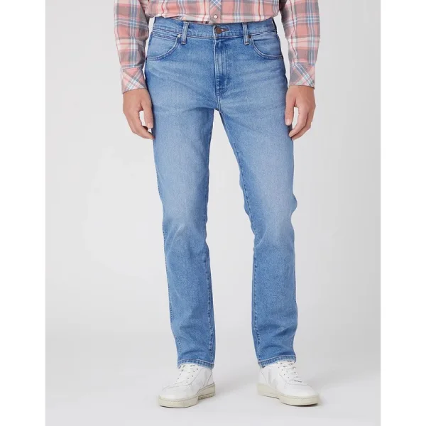 Deze blauwe denim heren jeans van Wrangler is een must-have voor elke stijlvolle man. De slim fit pasvorm geeft jou een moderne en strakke uitstraling, terwijl het tijdloze blue denim zorgt voor een moeiteloze casual look. Draag hem met een t-shirt voor een relaxte daglook of met een overhemd voor een chique avondoutfit.en#10;en#10;Deze jeans is gemaakt van hoogwaardig materiaal, bestaande uit 77% katoen, 22% polyester en 1% elastaan, wat zorgt voor een comfortabele pasvorm en duurzaamheid. De 5-pocket stijl biedt genoeg ruimte voor jouw persoonlijke items. De lichtblauwe wassing voegt een eigentijdse touch toe aan het klassieke ontwerp.en#10;en#10;De jeans sluit met een handige rits- en knoopsluiting en is afgewerkt met het kenmerkende Wrangler herenlogo op de achterzak. Deze jeans is perfect voor dagelijks gebruik en is eenvoudig te combineren met verschillende outfits. Voeg deze veelzijdige Wrangler heren jeans toe aan jouw kledingcollectie en geniet van comfort en stijl, waar je ook naartoe gaat. Bestel hem nu bij NummerZestien en maak je klaar om te stralen in deze tijdloze jeans!