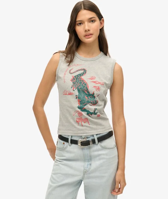 Bij Superdry laten we ons altijd inspireren door de geest van Japan. We hebben die altijd inspirerende iconografie verwerkt in onze Superdry x Komodo Kailash Dragon Slim-hemdtop om je te voorzien van een uniek kledingstuk dat je speelse kant toont. Het is een opvallende aanwinst voor je dagelijkse garderobe met een stijl die jou helpt een statement te maken via de kleding die je draagt. Je outfit krijgt een kunstzinnige touch dankzij de grafische print, en in combinatie met je favoriete spijkerb