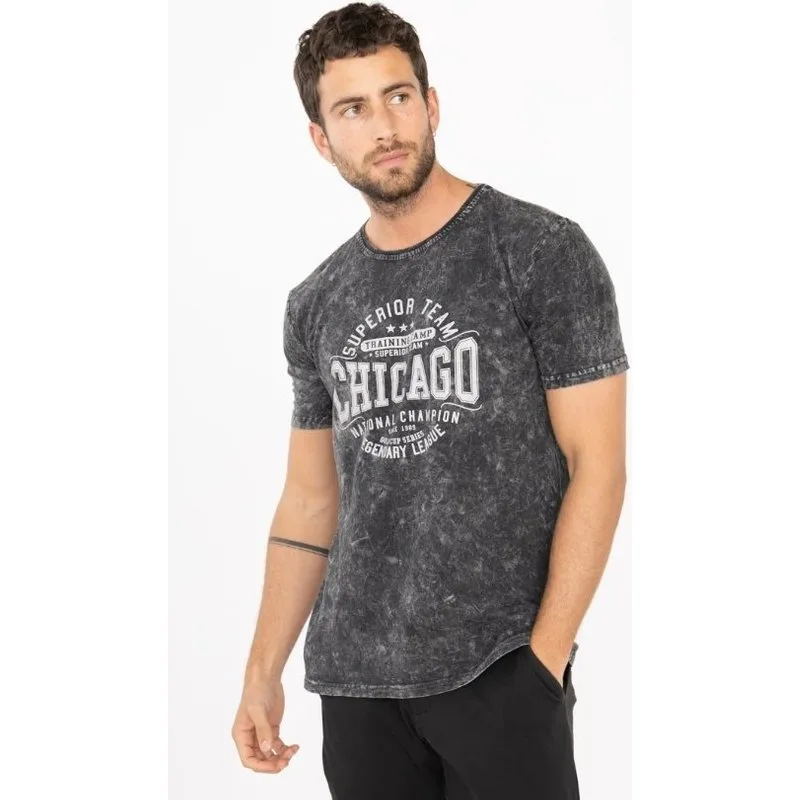 T-shirt heren | Normale pasvorm | X-Name | Stretch | Moda Italia Basic Italian Style T-shirt voor Mannen – "CHICAGO" Motief Dit Basic Italian Style T-shirt is een perfecte mix van comfort en casual stijl. Het T-shirt heeft een gewassen look, een ronde hals en een klassieke pasvorm met een rechte snit, waardoor het ideaal is voor een relaxte, tijdloze uitstraling. Het opvallende "CHICAGO" motief geeft het shirt een sportieve en urban touch, perfect voor liefhebbers van streetwear en casual mode. Dankzij de normale lengte valt het mooi op