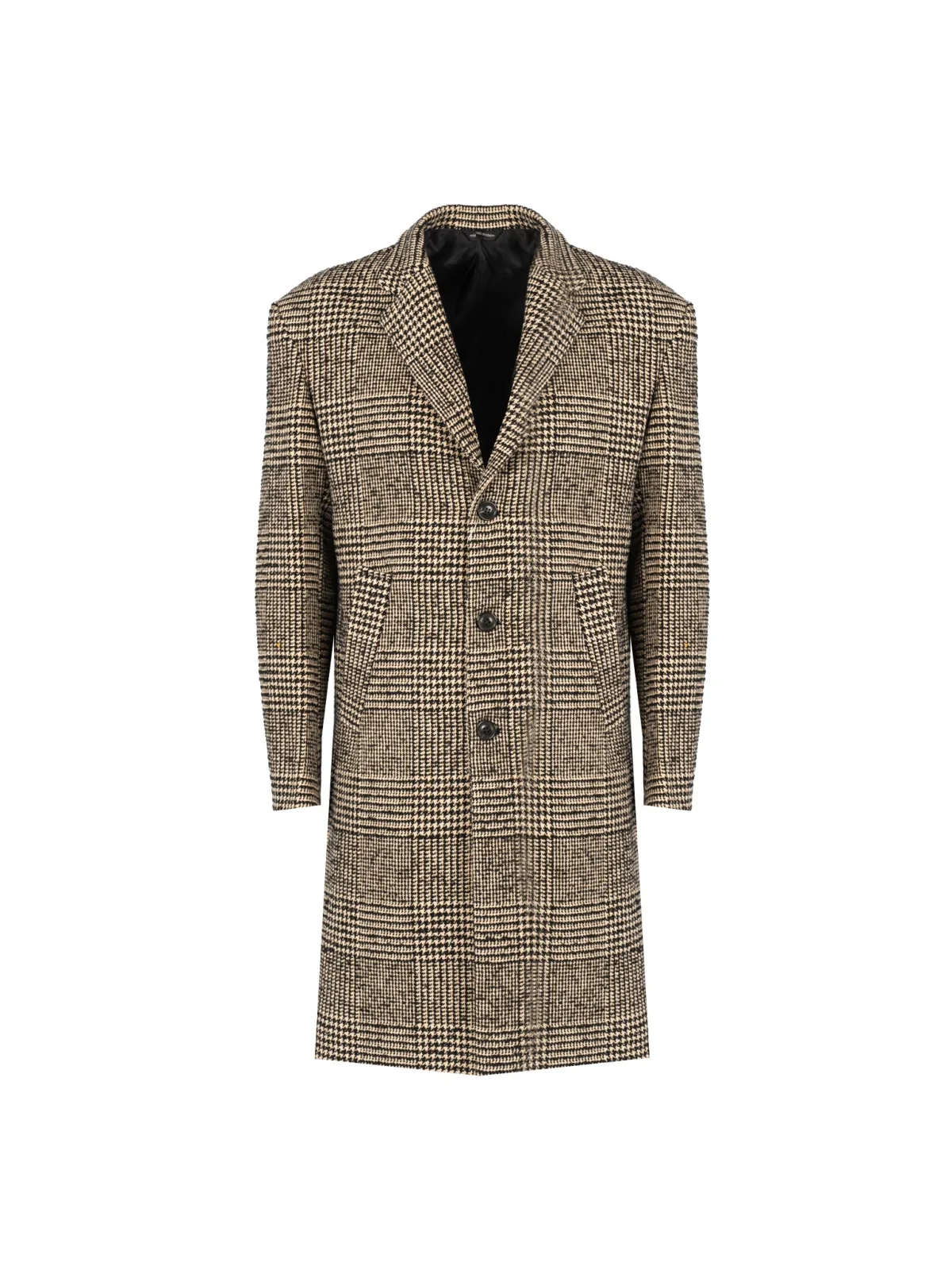 Enkele snit met één rij knopen Met voering In houndstooth Sluit met drie knopen Twee zakken vooraan, één binnenin Met split aan de achterkant Gemaakt van hoogwaardig materiaal Gemaakt in Italië
