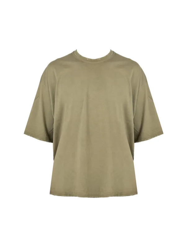 Los model (oversized) Met ronde hals (C-hals) Met ruwe afwerking Met verwassen effect Ondernemingsdetail aan de hals Met 7/8 mouwen Gemaakt van hoogwaardig katoen Gemaakt in Italië