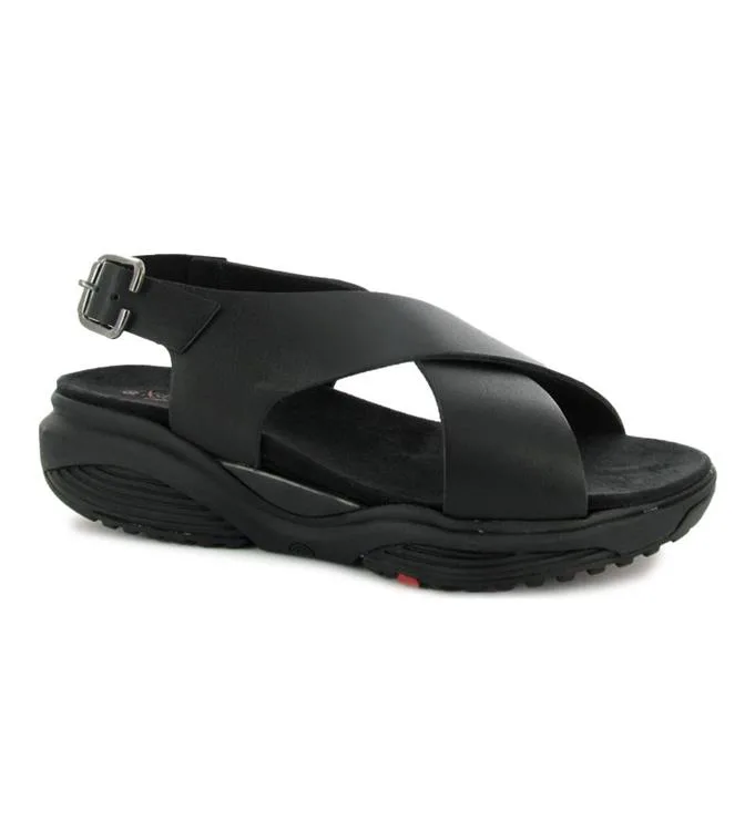 Corfu - Deze modieuze sandaal, met klassiek gekruiste banden, biedt perfecte ondersteuning en laat tegelijkertijd voldoende lucht naar de voeten toe. De extra brede riemen van zacht, hoogwaardig leer kunnen bij de hiel met een metalen gesp individueel worden versteld. De ietwat dikkere zool met Stretchwalker-balanstechnologie zorgt voor extra comfort.