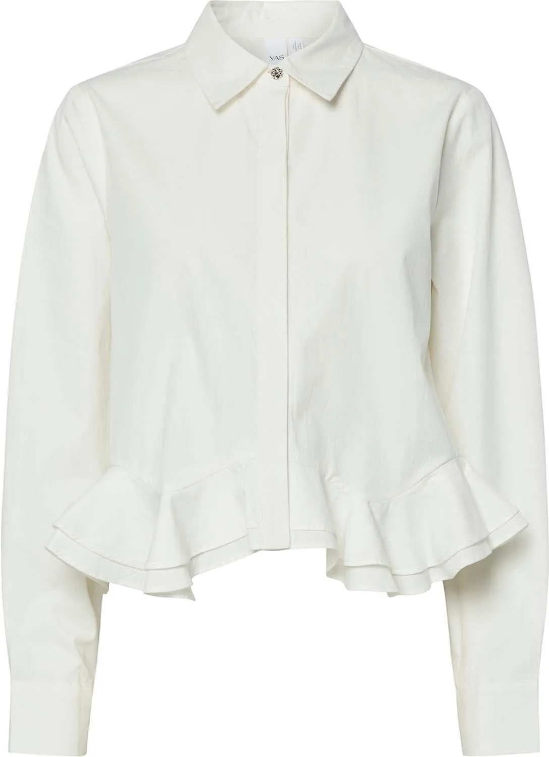 De Blouse Anera van Y.A.S. is een stijlvolle blouse met een klassieke overhemdkraag en lange mouwen met manchetten en knopen. De regular fit en effen patroon maken het perfect voor een nette gelegenheid. De subtiele ruffle aan de onderzijde voegt een speels detail toe.
