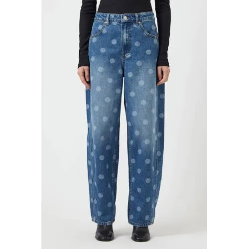 Y.A.S high waist barrel jeans met stippen medium blue denim