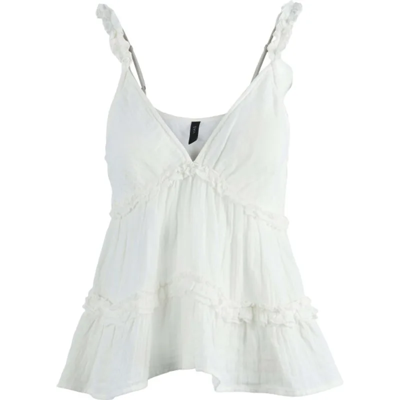 Voel de zachtheid van de yasanino sl top s. star white van y.a.s. op je huid. Dit witte topje, gemaakt van hoogwaardig katoen, biedt je een ongeëvenaard comfort. De verstelbare schouderbandjes zorgen voor een perfecte pasvorm, zodat je met vertrouwen de dag doorkomt. Het gevoerde bovendeel voorkomt doorzichten, waardoor je je vrij kunt bewegen. Het speelse ontwerp met diverse stofstroken voegt een uniek accent toe aan je outfit.