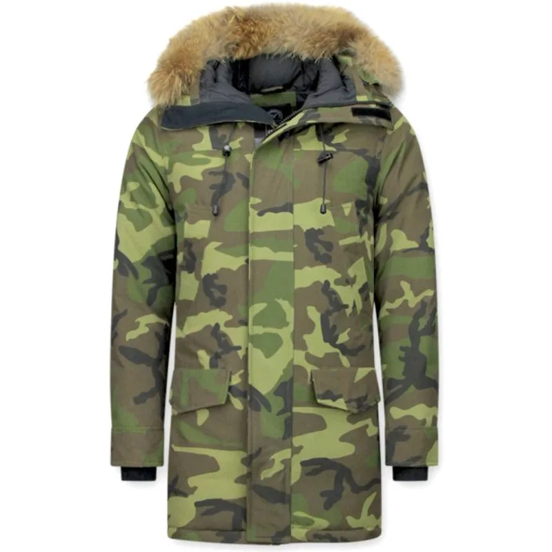 Dit is een lange parka jas voor heren met bontkraag in camouflage stijl. Deze stoere parka komt in een lange uitvoering en is lekker warm gevoerd voor de winter. Door de slim fit sluit de jas lekker aan. De jas is voorzien van meerdere zakken. - Productinformatie: Lange parka jas voor heren Heeft een mooie bontkraag Heeft een camouflage kleur Comfortabel en warm model, perfect voor de winter Lang model met een slimfit pasvorm Het materiaal bestaat uit 100% polyester De voering bestaat uit 72% polyester 28% katoen Heeft een rits als sluiting Het model heeft 4 jaszakken en 2 binnenzakken De capuchon is niet afritsbaar De bontkraag is wel afritsbaar Breng hem naar de stomerij voor een maximale levensduur Kan ook gewassen worden op 30 graden Verkrijgbaar in de maten S – M – L – XL – XXL Let
