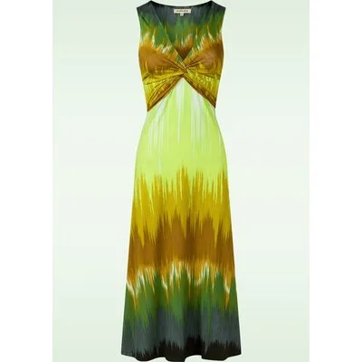 '' Soft, stretchy, and ready to move with you.” Deze beauty heeft een speels gedraaid knoopdetail bij de buste en loopt uit in een flowy midi-rok. Ze is uitgevoerd in een stretchy en zachte aloë-modalmix, voorzien van een groene abstracte print. * Midi jurk * Gedraaid knoopdetail bij de buste * Geen rits of knopen; aantrekken en ready to go! * Valt bij een lengte van 1,70 m tot halverwege de kuit