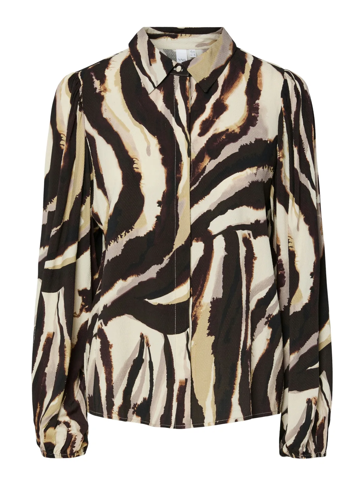 YAS Blouse ‘YASAsina’ crème / taupe / zwart Prijzen