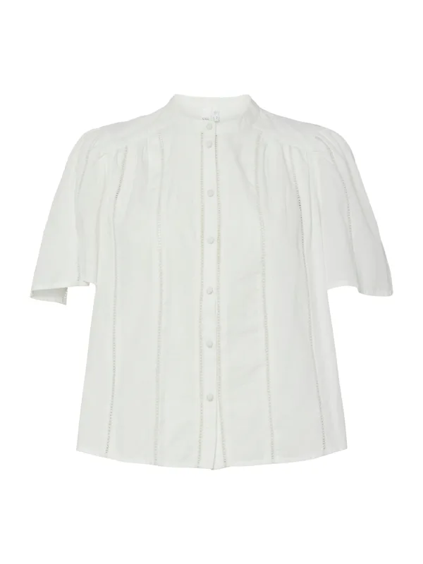Blouse type: Klassieke blouse; Design: Knop placket; Type sluiting: Knoopsluiting; Materiaal: Katoen; Motief: Effen; Kraag: Opstaande kraag; Details: Gedrapeerd, Mesh; Extra's: Licht transparant, Voelt zacht aan, Overdekte knopen; Pasvorm: Losse pasvorm; Armlengte: Halve mouw; Lengte: Normale lengte