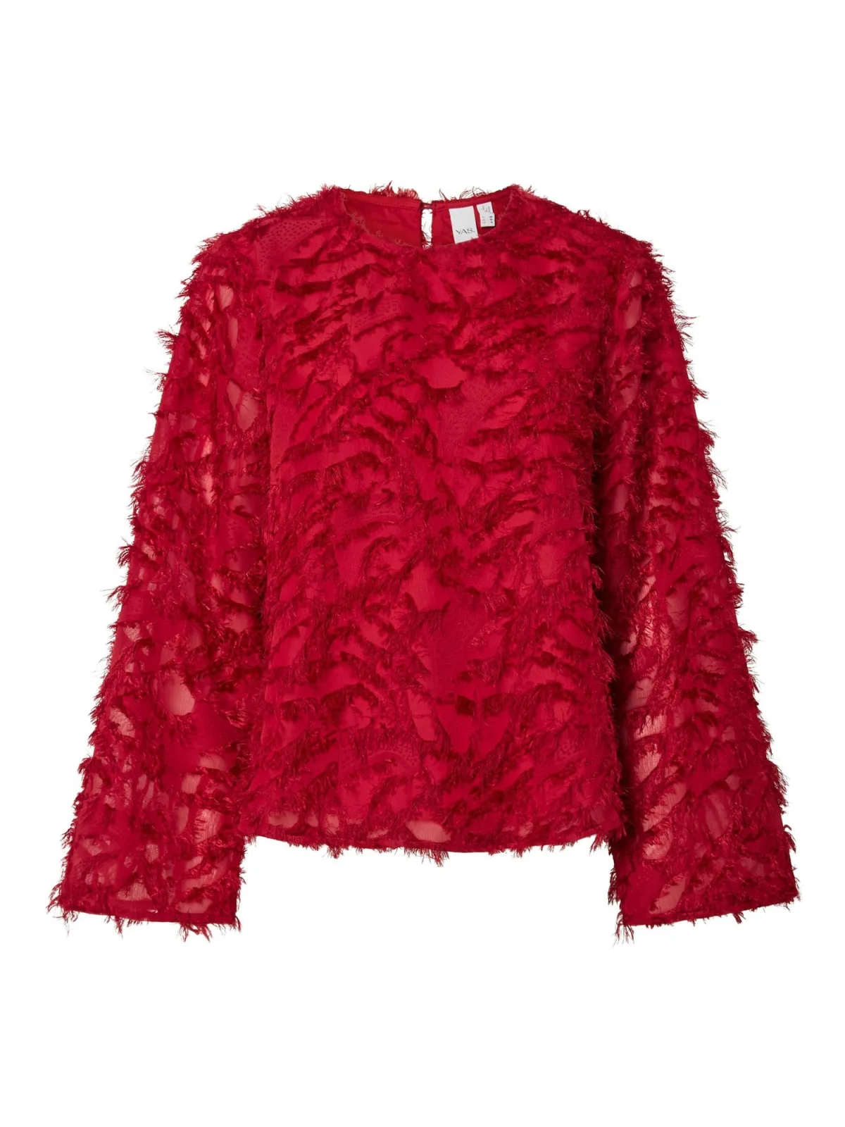 Damesblouse met lange mouwen van YAS;Los model;Ronde hals;Model 'PARIA';Met rafels;Ruglengte bij maat 36: 57 cm;Mouwlengte bij maat 36: 50 cm