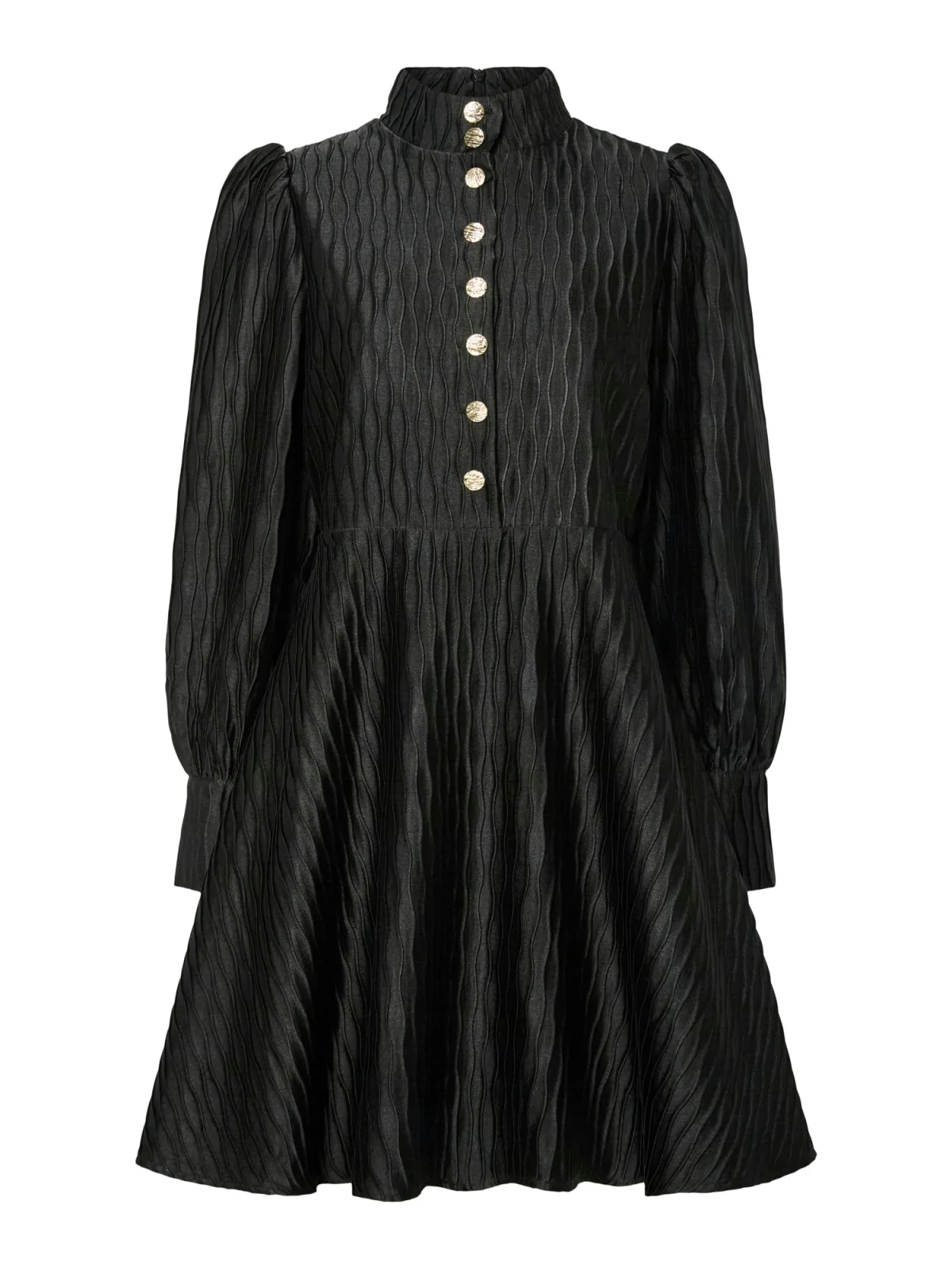 Design: Knop placket, Pofmouwen; Type sluiting: Ritssluiting; Materiaal: Gerecycled materiaal; Motief: Effen; Kraag: Opstaande kraag; Details: Gedrapeerd; Extra's: Met textuur, Milieuvriendelijk geproduceerd; Lengte: Kort/mini; Snit: Getailleerd; Pasvorm: Normale pasvorm; Armlengte: Lange mouw