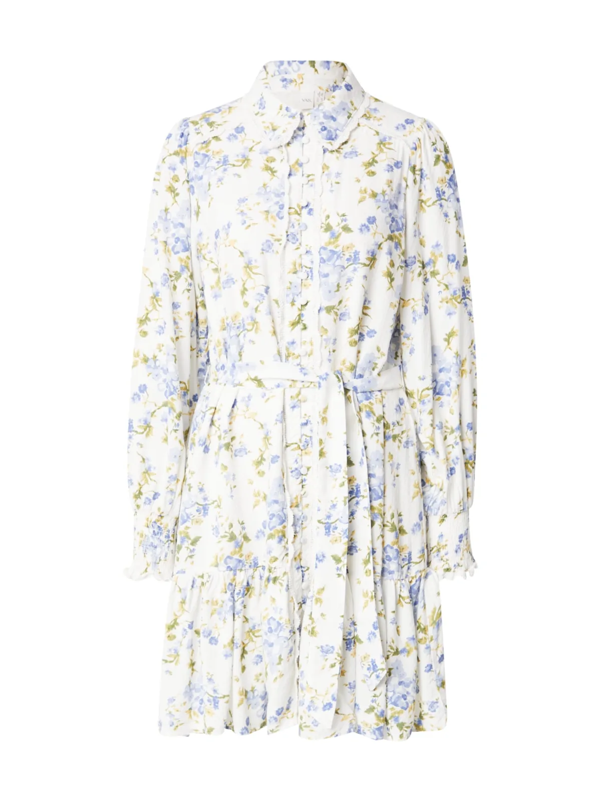 Design: Gevoerde zoom/rand, Elastische taille/zoom, Knop placket; Type sluiting: Knoopsluiting; Materiaal: Viscose; Motief: Bloemenprint; Kraag: Kentkraag; Details: Kant, Volant, Gedrapeerd; Extra's: All-over patroon, Gladde stof; Lengte: Knielengte; Snit: Getailleerd; Pasvorm: Normale pasvorm; Armlengte: Lange mouw