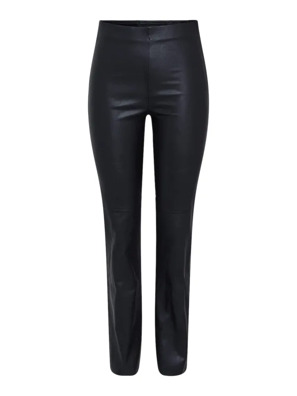 Design: Gevoerde zoom/rand, Ritszakken aan de zijkant; Type sluiting: Ritssluiting; Materiaal: Leer; Motief: Effen; Extra's: Glanzend, Vaste grip; Lengte: Lang/maxi; Pasvorm: Bootcut; Taillehoogte: High waist