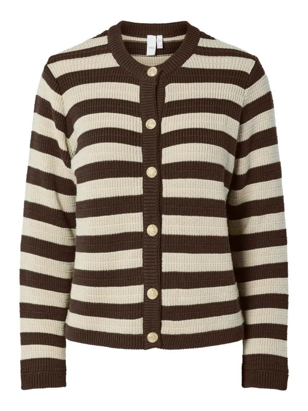 YAS Gebreid vest ‘YASSIRONI’ beige / donkerbruin Prijzen