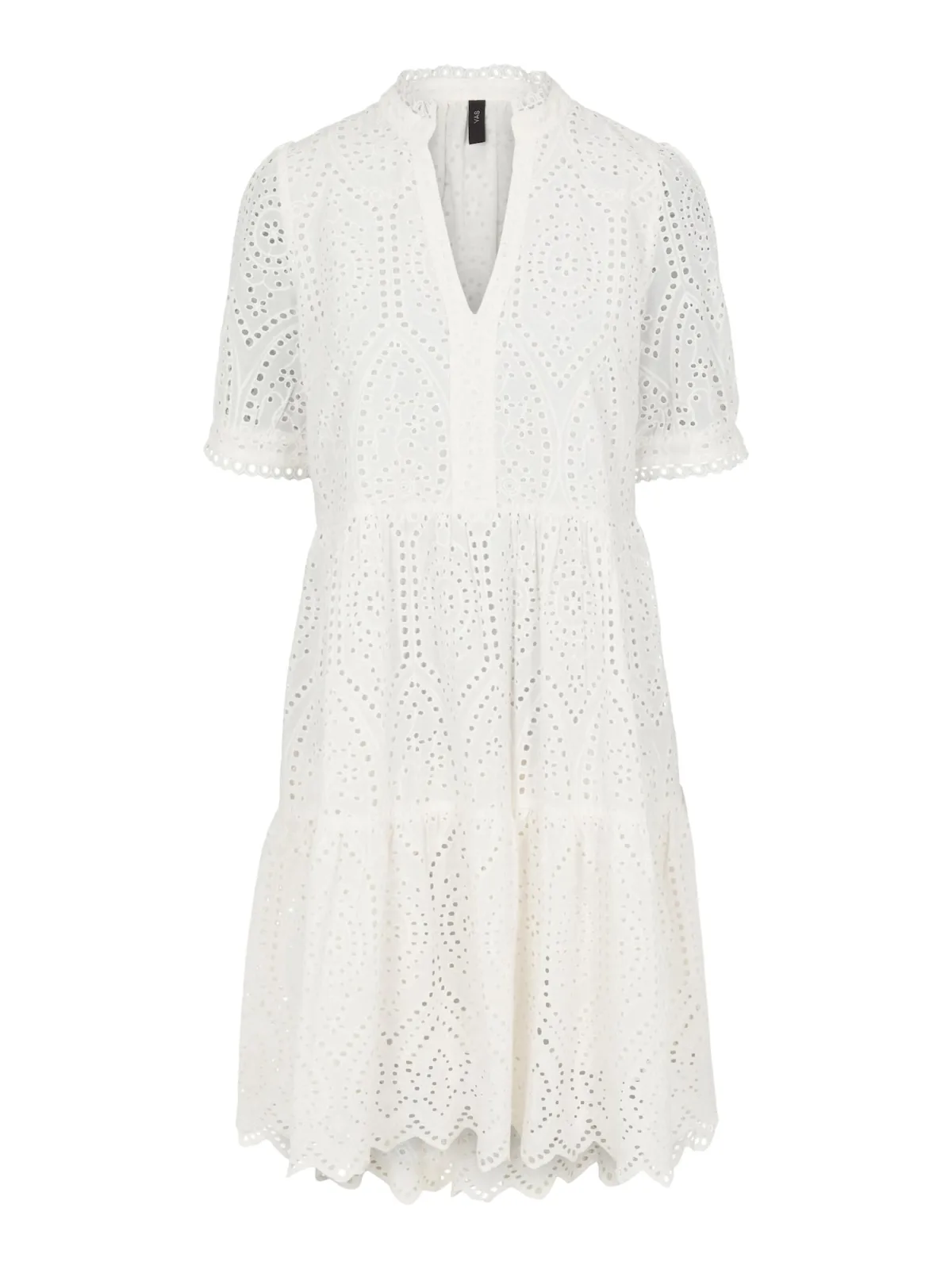 dames mini-jurk van YAS;puur katoen;A-lijn;Model 'Holi';ajourwerk;V-hals;ruglengte bij maat S: 94 cm;borstwijdte bij maat S: 50 cm;Mouwlengte bij maat S: 30 cm