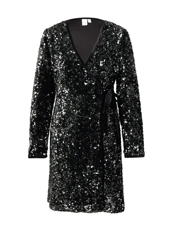 Design: Diepe snit/decolleté, Om te knopen/binden; Halstype: V-hals; Details: Pailletten, Wikkel design; Extra's: Glanzend, Gestructureerd oppervlak; Lengte: Kort/mini; Snit: Recht; Pasvorm: Normale pasvorm; Armlengte: Lange mouw