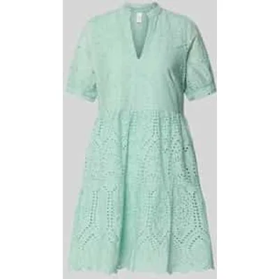 dames mini-jurk van YAS;puur katoen;A-lijn;Model 'Holi';ajourwerk;V-hals;ruglengte bij maat S: 94 cm;borstwijdte bij maat S: 50 cm;Mouwlengte bij maat S: 30 cm