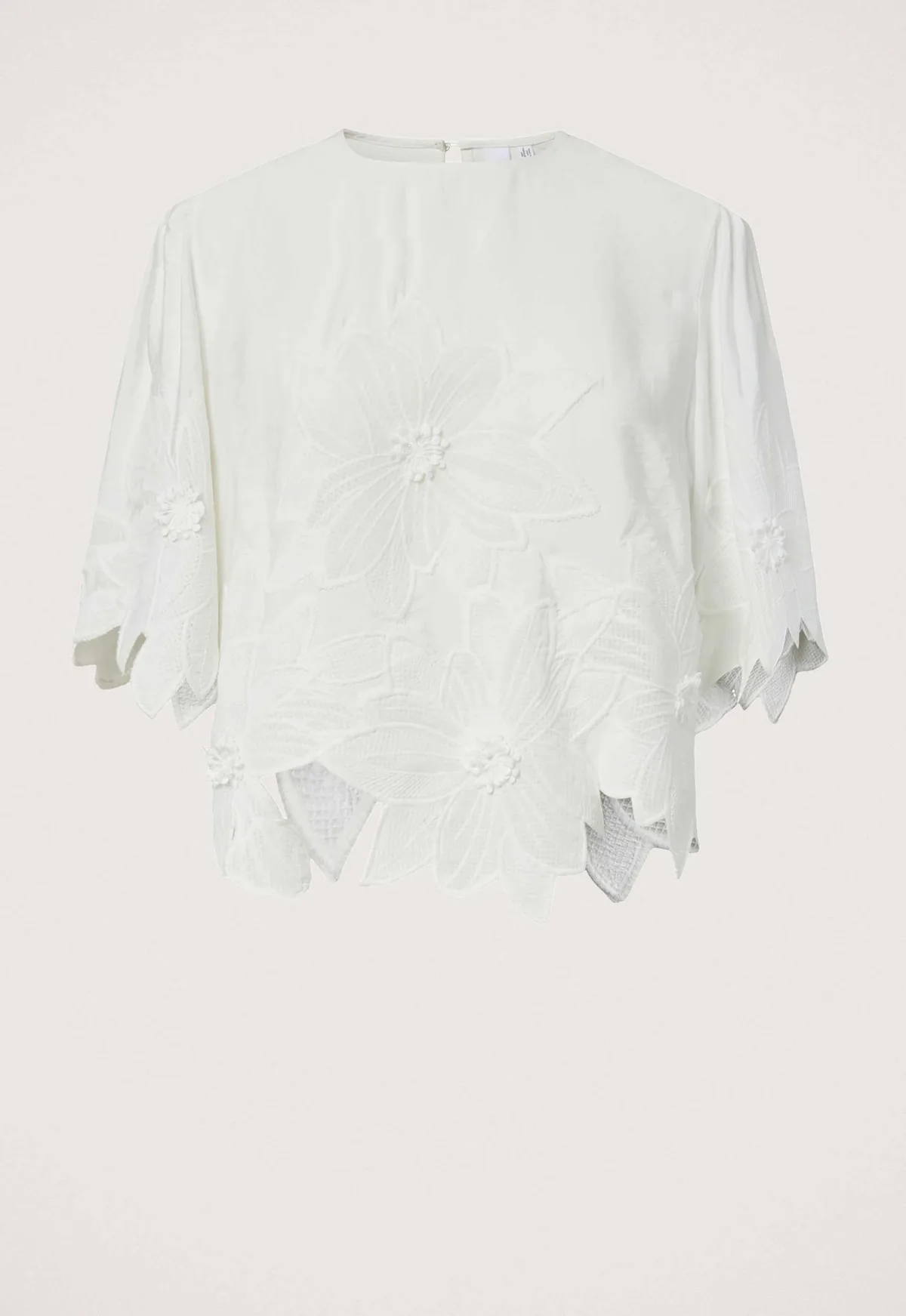 Dit is de 26040198 Mori Top van het merk YAS. Deze top heeft een regular pasvorm, driekwart mouwen en een ronde hals met knoopsluiting aan de achterkant. De top is afgewerkt met een bloemenborduursel.