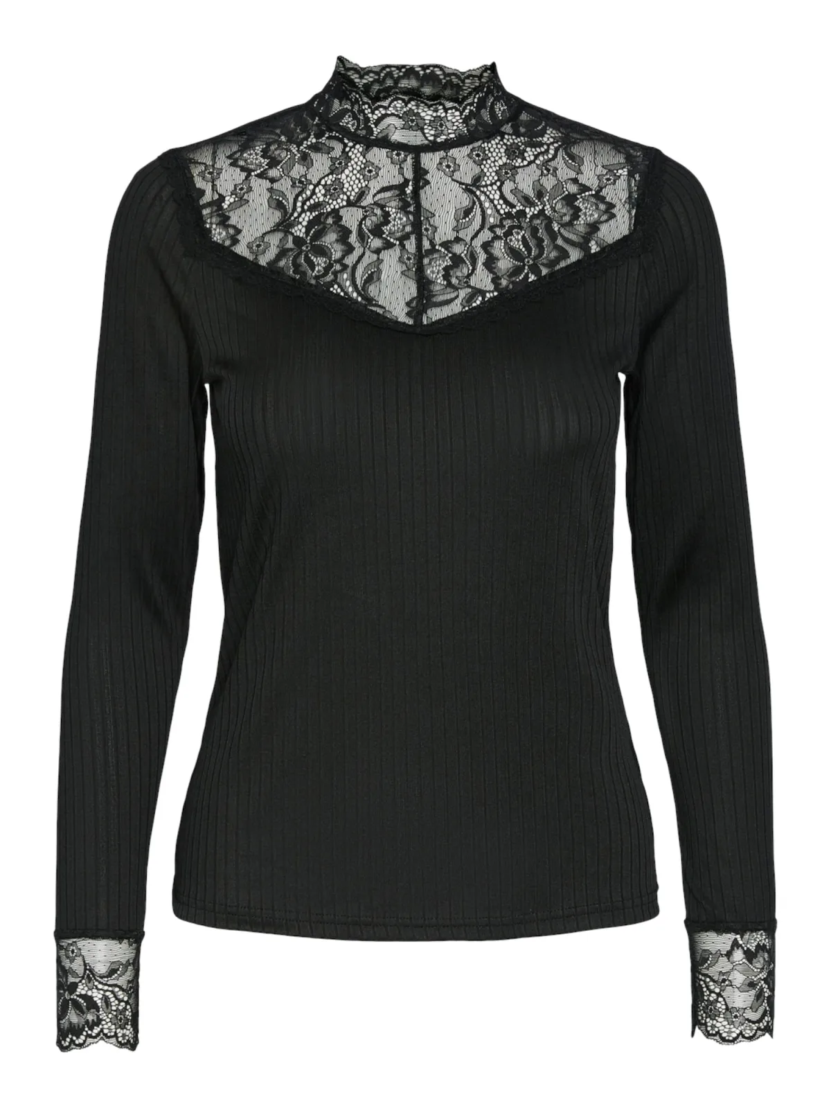 Design: Gevoerde zoom/rand, Rechte zoom; Materiaal: Gerecycled materiaal; Halstype: Opstaande kraag; Motief: Effen; Details: Kant; Extra's: Licht transparant, Op staal naden, Voelt zacht aan; Pasvorm: Slanke pasvorm; Armlengte: Lange mouw; Lengte: Normale lengte