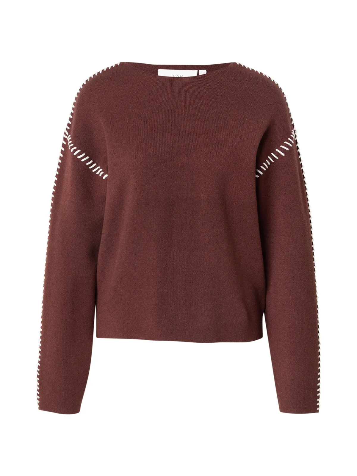 YAS Trui ‘YASSTITCHA’ ecru / bruin