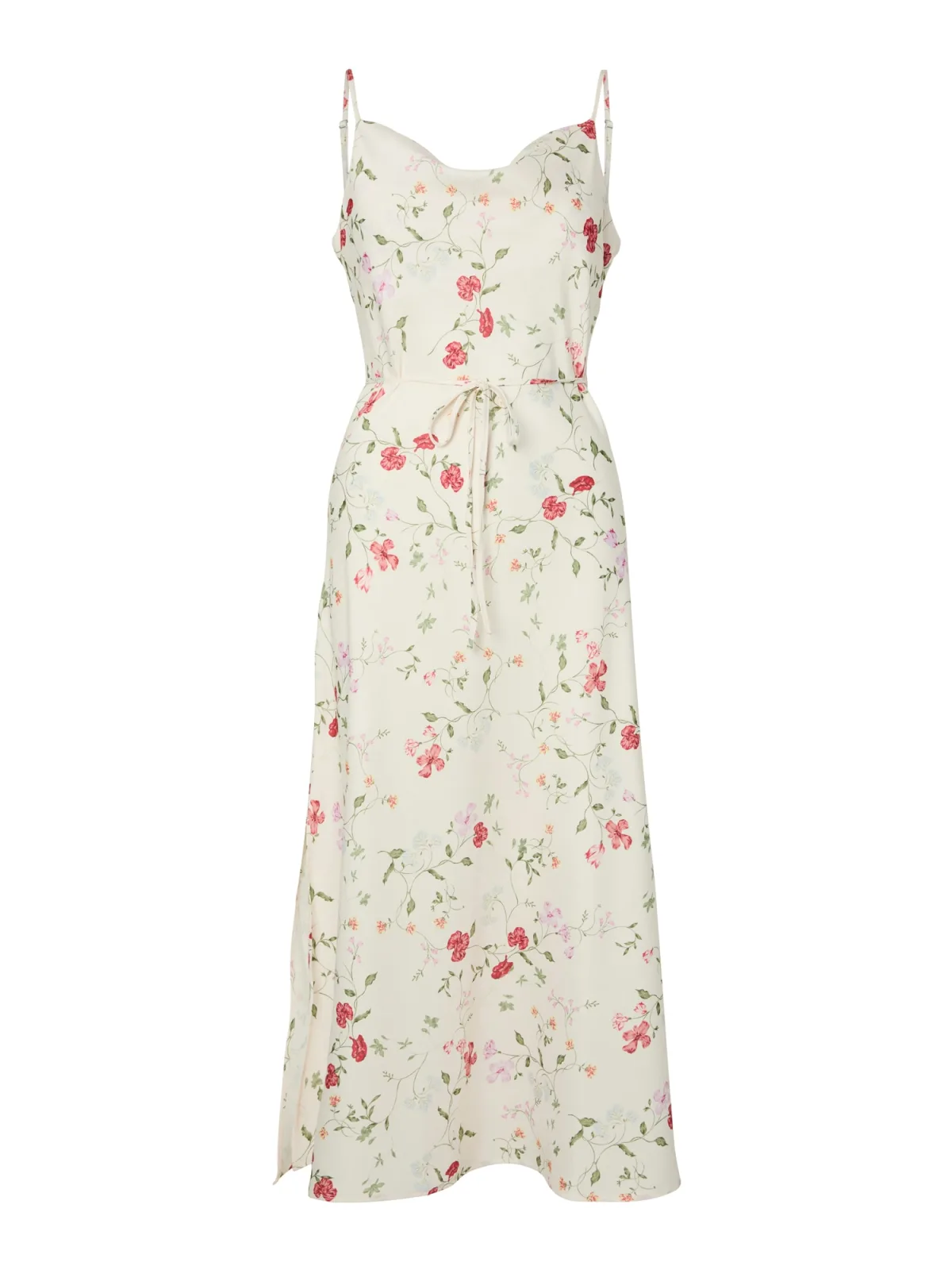 Dames cocktailjurk van YAS;Satin;recht model;Midijurk;Model 'THEA';Allover-look;spaghettibandjes;zijsplit;ruglengte bij maat 36: 116 cm;borstwijdte bij maat 36: 43 cm