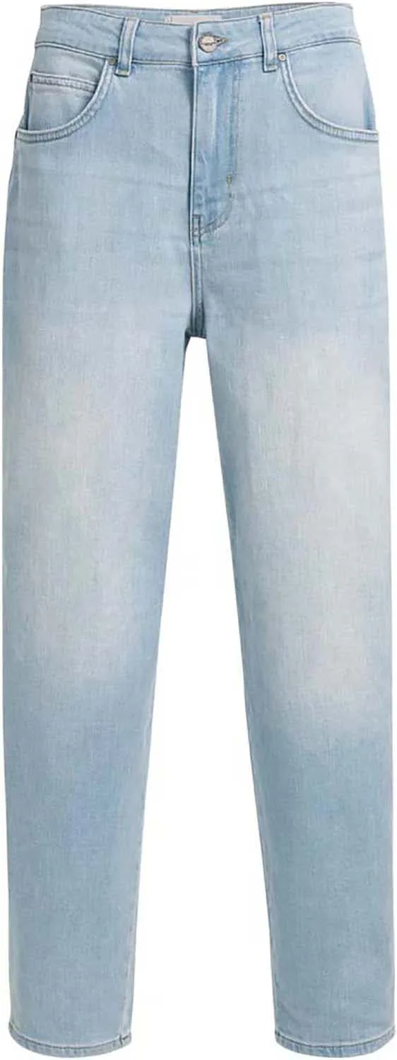 Barrel jeans jeans van Yaya in een lichte wassing, met hoge taille, mom fit en subtiel taps toelopende pijp. Voorzien van knoop en ritssluiting, vijf zakken en een effen ontwerp. Combineer met een T-shirt en blazer of met een vest en sneakers.