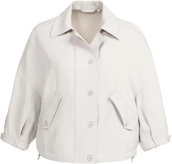 Blousejack van Yaya met casual, minimalistische uitstraling en boxy, oversized pasvorm. De spreidkraag en knoopsluiting geven een strak lijnenspel. Voorzakken met klep en brede manchetten zorgen voor praktische details. De effen stof en 3/4 mouwen maken combineren met jeans of pantalon eenvoudig.