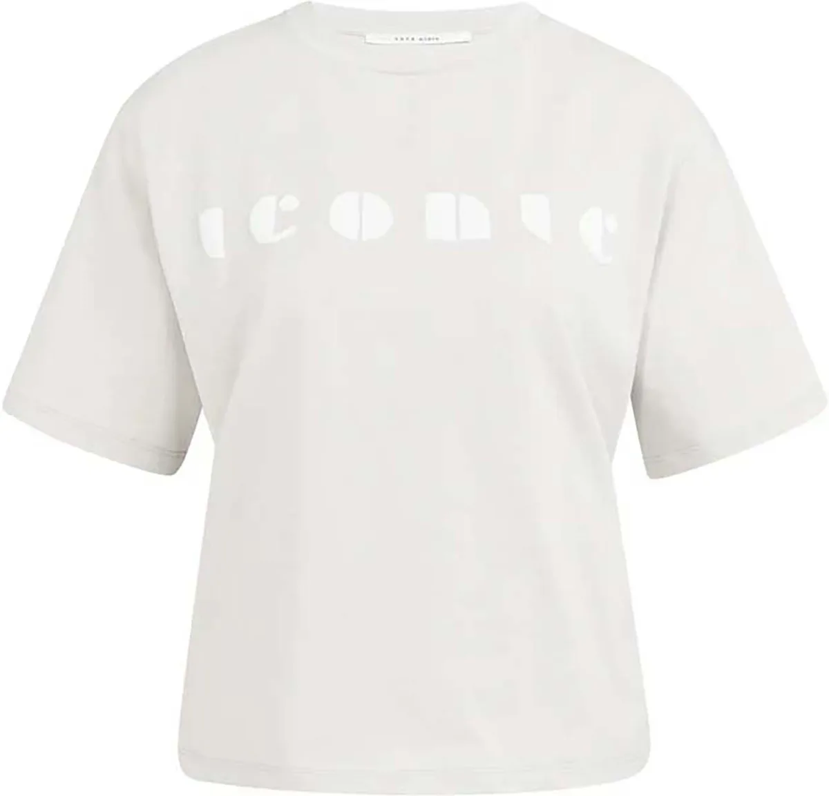 T-shirt van Yaya met ronde hals, korte mouwen en minimalistische, casual uitstraling. De rechte, iets ruimere pasvorm valt soepel en voelt prettig aan. Op de borst staat een contrasterende logoprint met het woord Iconic. Combineer met een jeans of een nette broek voor een rustige, moderne set.