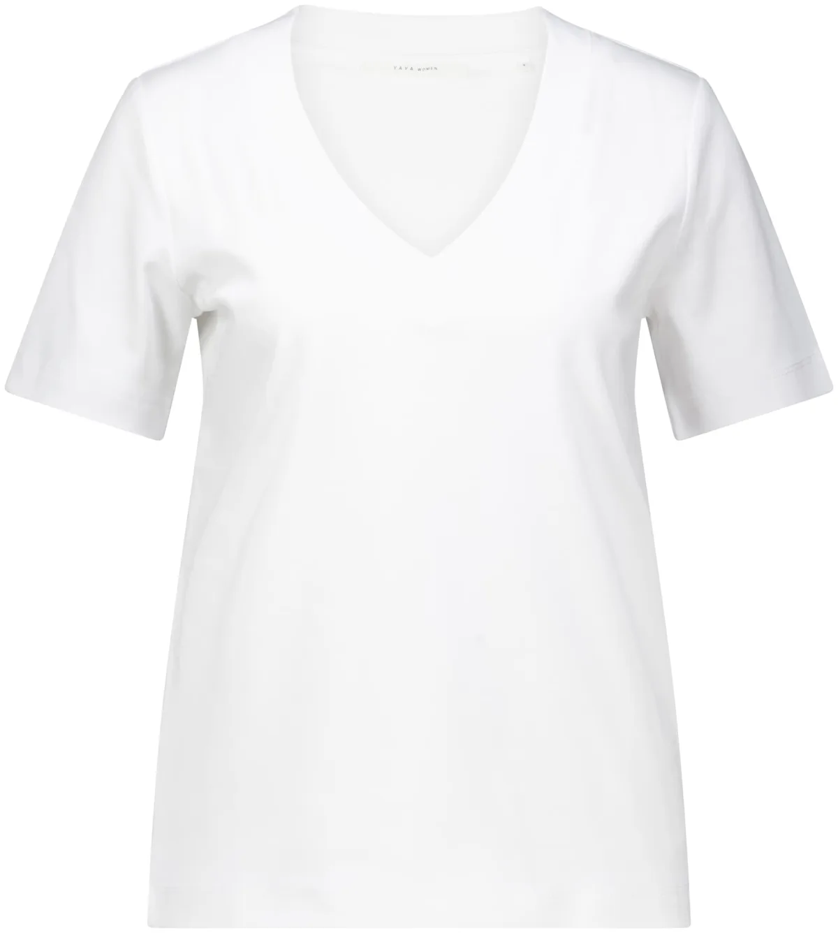 Het T-shirt van Yaya is een stijlvolle korte mouw top met een elegante V-hals en een effen patroon, perfect voor een casual gelegenheid. Deze top combineert comfort en eenvoud, en is een veelzijdige keuze voor dagelijks gebruik. Geniet van de tijdloze aantrekkingskracht en kwaliteit van Yaya.