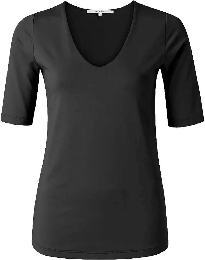 Het zwarte T-shirt van Yaya is een tijdloze must-have voor je garderobe. Met zijn klassieke V-hals en tijdloze uitstraling is dit shirt een veelzijdig item dat je het hele jaar door kunt dragen. Je kunt er nooit genoeg van hebben, want het is de perfecte basis voor elke outfit.