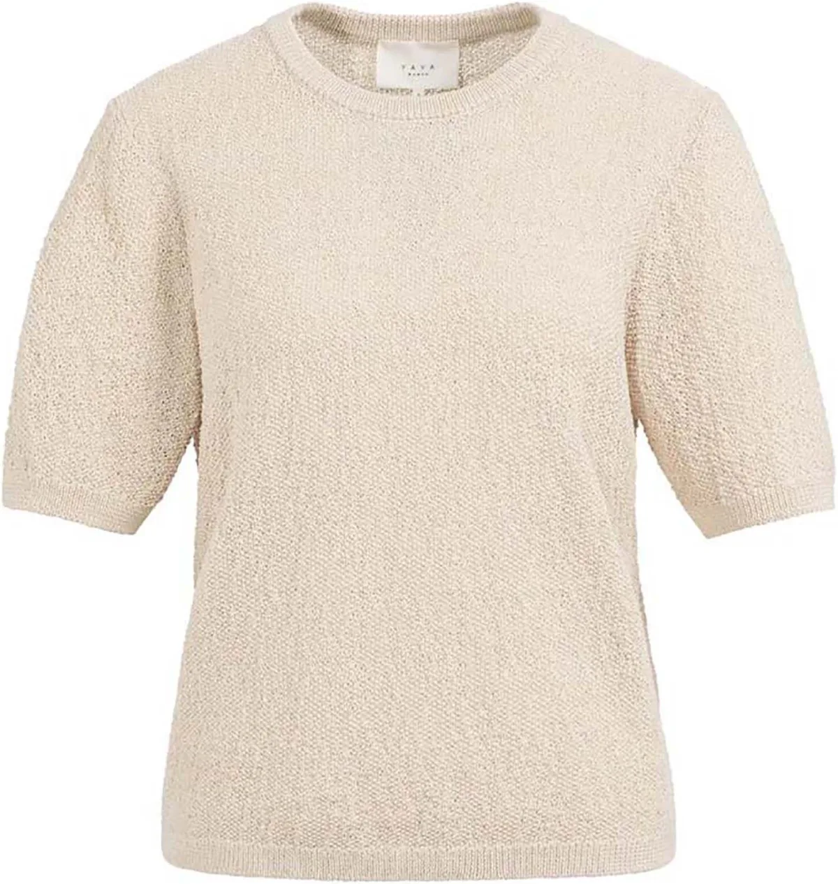 Trui van Yaya met ronde hals, korte mouwen en een regular pasvorm. De effen, licht gemêleerde knit heeft een subtiele, bouclé-achtige structuur en ribboorden langs hals, mouw en zoom. Draagt prettig en valt netjes. Combineer met een lichte broek of jeans voor een minimalistische, casual set.