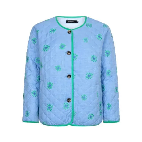Geef je dagelijkse look een frisse update met deze Ydence jas Robylin. De korte, doorgestikte jas in blauwtint heeft een rechtvallend model en valt door de ronde hals en de knoopsluiting netjes over je outfit. Geschikt als tussenjas voor het voorjaar, wanneer je iets lichts wilt dragen dat toch comfortabel aanvoelt.Doorgestikte bloemenjas met fijne details Korte jas met rechtvallende pasvorm, passend over een T-shirt, blouse of dunne trui Doorgestikt ontwerp voor een subtiele, gewatteerde structuur Borduursels met bloemenprint zorgen voor een levendige uitstraling Contrastbies langs de randen zorgt voor een verzorgd geheel Lange, rechte mouwen voor extra draagcomfort op koelere dagen Praktische zijzakken om kleine essentials bij je te dragen Gemaakt van katoen en een soepele kunstvezel voor een zachte touch en vormvaste stof Geschikt als quilted tussenjas voor de lente en frisse zomerdagenMakkelijk te combineren in je dagelijkse outfitsDeze blauwe jas sluit goed aan bij je dagelijkse garderobe. Combineer met een jeans en sneakers voor een casual dag, of draag de jas over een jurk voor een nette, alledaagse look. De korte lengte maakt het eenvoudig om je taille te accentueren, terwijl de rechte pasvorm genoeg ruimte laat voor laagjes eronder.Ydence, eigentijdse stijl voor elke dagYdence staat voor eigentijdse items met oog voor detail. De collecties sluiten aan op de mode van nu en zijn ontworpen om makkelijk te combineren, seizoen na seizoen. Met deze jas kies je voor een kledingstuk dat je vaak uit de kast pakt.Een praktische tussenjas voor dagen waarop je iets lichts, maar toch aangekleed wilt dragen.