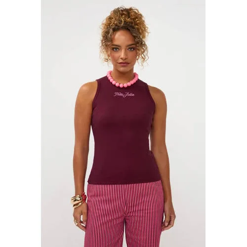 Ydence mouwloze top donkerrood rib gebreid Prijzen
