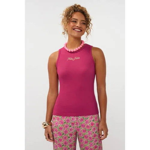 Val op in het dagelijks leven met de Ydence top Très jolie in fuchsia. Deze mouwloze top heeft een aansluitende pasvorm en een ribgebreide structuur die langs het lichaam valt. De ronde hals en de subtiele tekstprint zorgen voor een moderne uitstraling die past bij zowel een casual als een meer aangeklede look. Gemaakt van katoen met elastaan voelt de stof zacht en soepel aan op de huid.Details die je elke dag kunt dragen Mouwloze top met aansluitende pasvorm, praktisch om in een broek of rok te dragen Ribgebreid materiaal voor een zichtbaar structuureffect en extra draagcomfort Ronde halslijn die goed combineert met verschillende kettingen Fuchsia kleur als opvallende basis in je garderobe Tekstprint op de voorkant voor een moderne, grafische look Geschikt voor standaardmaten en onderdeel van de daily collectieGemakkelijk te stylen in jouw dagelijkse outfitsDeze top combineer je eenvoudig met een hoge jeans en sneakers voor een ontspannen dag, maar past ook goed onder een blazer met een rechte pantalon. Door de mouwloze snit is de top geschikt voor warmere lentedagen en prettig om onder een vest of jasje te dragen wanneer het wat frisser is.Ydence: stijlvol en draagbaarYdence ontwerpt vrouwelijke items die je gemakkelijk in het dagelijkse leven draagt. De collecties sluiten aan op het seizoen en zijn ontworpen met aandacht voor kleur, details en een prettige pasvorm. Met deze top uit de 'Très jolie' lijn voeg je een helder kleuraccent toe aan je garderobe dat je vaak kunt dragen.Een praktische, eigentijdse top die soepel meebeweegt met jouw dag.