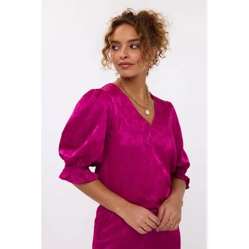 Ydence wide leg regular waist broek fuchsia Prijzen