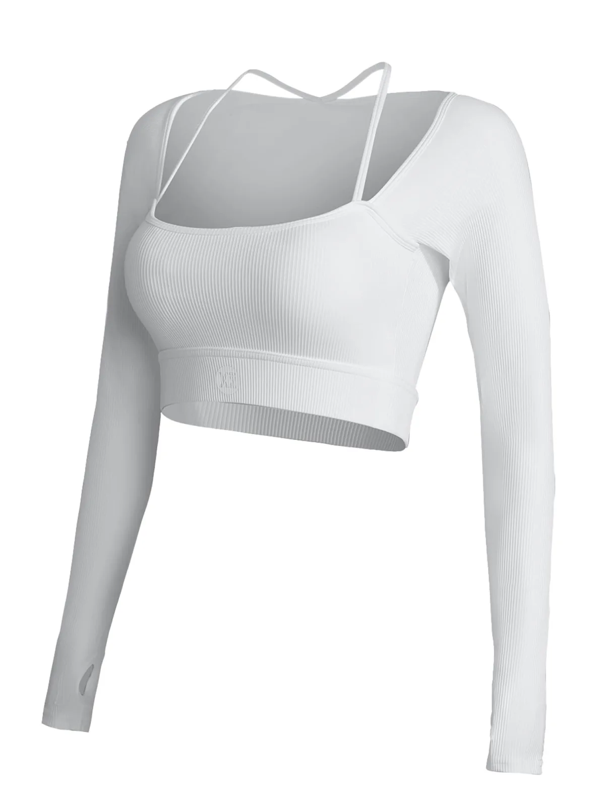 Design: Geribbeld gebreid, Overige kragen; Materiaal: Jersey; Halstype: Carréhals; Motief: Effen; Extra's: Op staal naden, Met textuur; Pasvorm: Aansluitende pasvorm; Armlengte: Lange mouw; Lengte: Korte pasvorm