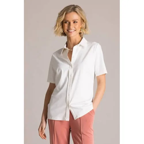 Deze witte dames blouse van Yest is een frisse basic met een vrouwelijke uitstraling. Het effen witte ontwerp en de klassieke kraag geven een nette look, terwijl de soepele stof met stretch zorgt dat je je de hele dag vrij kunt bewegen. De blouse heeft een middel lange lengte en korte mouwen, ideaal voor warme dagen of om te dragen onder een jasje.Verfijnde details voor elke dag Effen witte kleur, gemakkelijk te combineren met al je broeken en rokken Klassieke kraag voor een verzorgde en tijdloze uitstraling Knoopsluiting over de hele voorkant voor eenvoudig aan- en uittrekken Korte, rechte mouwen die luchtig aanvoelen in de zomer Middel lange lengte die mooi valt over de heup Gemaakt van 75% polyamide en 25% elastaan voor een soepele stof met fijne stretch Wasbaar op 30 graden, praktisch in het onderhoud Zonder zakken voor een glad en vrouwelijk silhouetLuchtig en vrouwelijk combinerenDeze blouse past bij zowel een werkdag als een vrije dag. Draag de top op een nette pantalon voor een zakelijke outfit of op een jeans voor een meer casual look. In de zomer is de lichte stof prettig en kun je de blouse ook open over een top stylen.Yest: vrouwelijke stijl met een moderne touchYest staat bekend om kleding met een vrouwelijke pasvorm en een eigentijdse uitstraling. De collecties sluiten aan op het dagelijks leven, met items die prettig dragen en makkelijk te combineren zijn. Zo voeg je met deze blouse eenvoudig een veelzijdig en stijlvol item toe aan je garderobe.Een lichte, vrouwelijke blouse die keer op keer van pas komt.