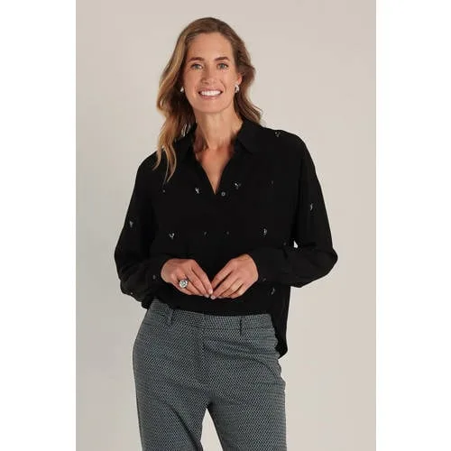Deze blouse van Yest heeft lange rechte mouwen en een klassieke kraag. De blouse is gemaakt van viscose. Met knoopsluiting, glitters en pailletten krijgt je outfit een feestelijke uitstraling.