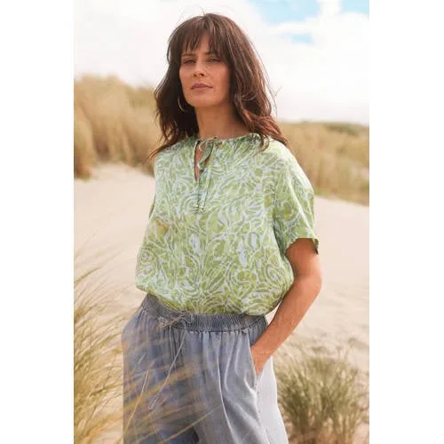 Een lichte basis voor elke dag, dat is deze groene viscose dames blousetop van Yest. De top heeft een luchtige uitstraling, ideaal voor warme dagen of als laagje in het voorjaar. De all over print in groentinten zorgt voor een rustige uitstraling, terwijl de soepele stof langs het lichaam valt.Luchtige top met verfijnde details Gemaakt van 100% viscose, een soepel materiaal dat zacht aanvoelt op de huid Korte, rechte mouwen voor een ontspannen pasvorm Ronde hals met vetersluiting als subtiel detail All over print in groentinten voor een rustig kleurbeeld Blousetop zonder zakken voor een gladde, strakke voorkant Wasbaar op 30 graden, prettig in het dagelijkse onderhoud Geschikt voor de zomer en voor alledaagse outfitsMakkelijk combineren, elke dag weerDeze top sluit goed aan bij je dagelijkse garderobe. Draag met een jeans voor een casual combinatie of met een nette broek voor een meer geklede set. Door de lichte viscose stof voelt de top prettig aan op warme dagen en is hij ook geschikt onder een vest of dun jasje wanneer het afkoelt.Yest: mode voor alledaags gebruikYest brengt toegankelijke mode met collecties die aansluiten op het dagelijks leven. De items zijn ontworpen met aandacht voor pasvorm, draaggemak en eenvoudige combinaties. Met deze top voeg je een kledingstuk toe dat je op verschillende manieren kunt dragen.Een praktische keuze voor dagen waarop je zonder veel moeite verzorgd voor de dag wilt komen.