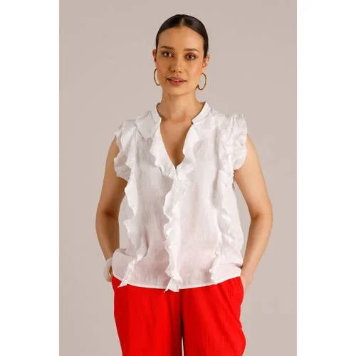 Voor zomerse dagen is een luchtige top heel praktisch. Deze witte linnen dames top met V-hals van Yest voelt licht en fris op de huid, ideaal voor warme dagen of een drukke werkdag. De effen kleur maakt het een fijne basic, terwijl de subtiele details net iets extra's geven. De top heeft een vrouwelijke V-hals en kapmouwen met ruches die mooi langs de schouders vallen. Door het rechte model zonder sluiting trek je de top eenvoudig aan en combineer je die moeiteloos met je favoriete broeken en rokken.Verfijnde details voor elke dag Gemaakt van 100% linnen, voelt luchtig aan en is prettig om te dragen bij warm weer Witte, effen kleur die makkelijk te combineren is met jeans, linnen broeken of een zomerrok V-hals zorgt voor een open, vrouwelijke halslijn Kapmouwen met ruches geven een speels en zacht schouderdetail Geen sluiting, zodat de top snel en eenvoudig aan en uit gaat Wasbaar op 30 graden, praktisch in je wekelijkse wasroutineVan casual tot kantoorDeze linnen top past goed in een dagelijkse garderobe. Draag de top op een losse broek met sandalen voor een ontspannen zomerlook of combineer met een nette broek en blazer voor een zakelijke dag. De rustige kleur en het cleane ontwerp maken het een handige basis voor veel outfits.Yest: eigentijdse mode voor elke dagYest staat bekend om toegankelijke en draagbare mode met een vrouwelijke uitstraling. De collecties sluiten aan bij het dagelijks leven, met kleding die prettig zit en er verzorgd uitziet. Zo voeg je met deze linnen top eenvoudig een stijlvol en betrouwbaar item toe aan je garderobe.Een lichte, frisse basic die je het hele zomerseizoen blijft pakken.