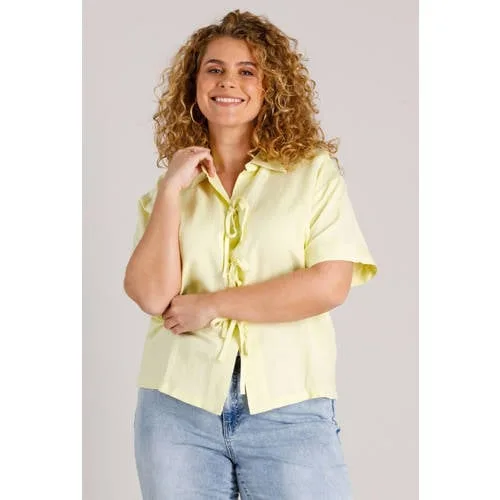 Breng licht in je garderobe met deze lichtgele linnen blouse met korte mouw voor dames van Yest Curve. De effen kleur geeft een rustige, frisse uitstraling, terwijl de klassieke kraag en knoopsluiting zorgen voor een verzorgde look. De blouse valt op een middellange lengte en heeft rechte mouwen met een subtiel strikje als detail, wat net dat beetje extra geeft.Dagelijkse blouse met doordachte details Gemaakt van 55% linnen en 45% viscose, waardoor de stof luchtig aanvoelt en soepel valt Lichtgele kleur voor een frisse, zomerse uitstraling Klassieke kraag en knoopsluiting voor een nette, tijdloze look Middellange lengte, prettig te dragen op zowel een broek als rok Korte, rechte mouwen met strikdetail en zonder zakken voor een rustig silhouet Onderdeel van de 'Daily' collectie, ideaal voor elke dag Wasbaar op 30 graden voor eenvoudig onderhoudLuchtig voor lente en zomerDeze blouse is ontwikkeld voor het lente en zomer seizoen. De combinatie van linnen en viscose voelt licht aan op de huid en is prettig op warmere dagen. Draag de blouse casual op een jeans of combineer met een nette broek voor een meer geklede outfit.Yest Curve: stijl in grote matenYest Curve richt zich op dames die kleding zoeken in grote maten met een modieuze uitstraling. De pasvorm en materialen worden gekozen met aandacht voor comfort en stijl, zodat je je op een ontspannen manier goed gekleed voelt in het dagelijks leven.Een heldere, lichte blouse die je garderobe klaar maakt voor zonnige dagen.
